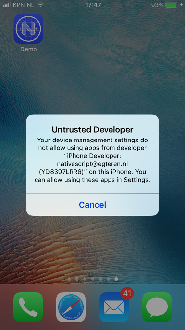General / AlgemeenProfile & Device Management / Beheer profielen en apparatenTrust 'your personal profile'Once you have trusted your personal profile you can use the app on your device.